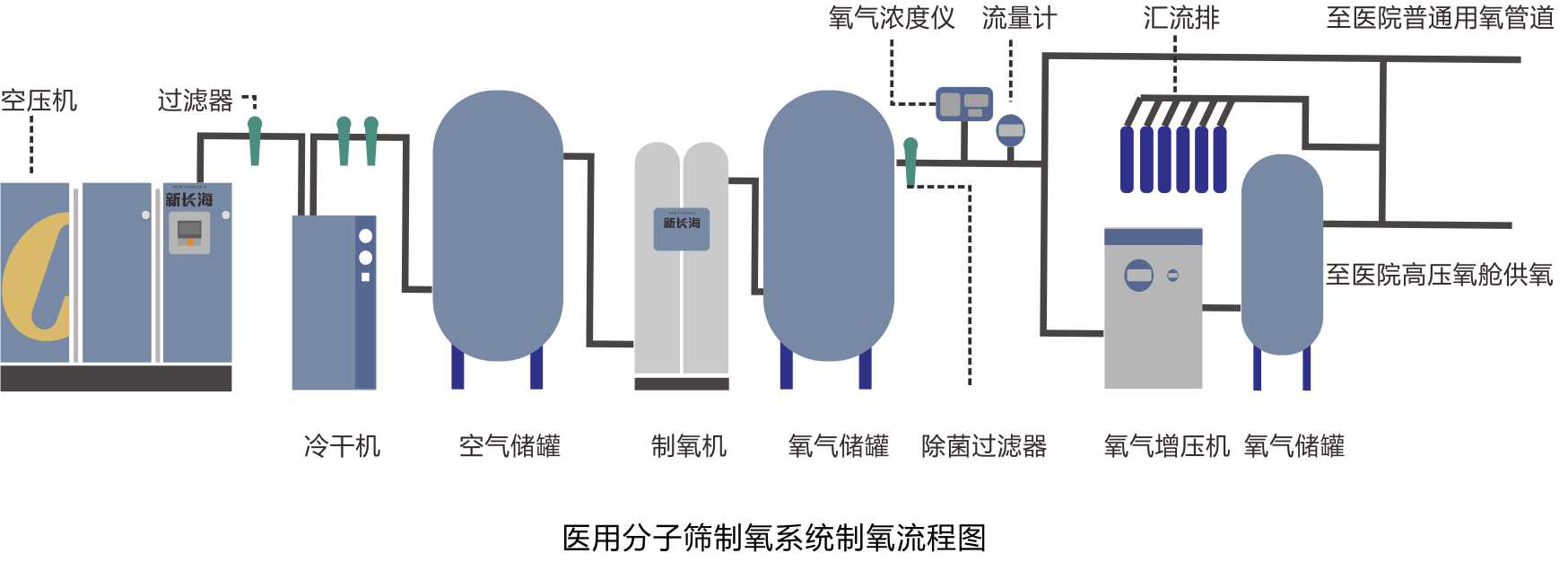 ●長海CHO-G系列型號(hào),采用高純制氧工藝流程,氧濃度可達(dá)到99.5%。